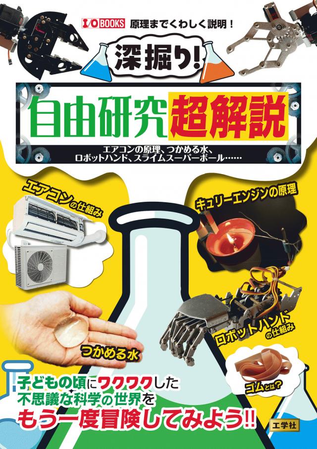 本書では、そんな自由研究のネタから「太陽熱温水器」「コヒーラ効果」「スライムから作るスーパーボール」「ロボットハンド」などを選び、その原理を中高生〜大人向けに詳細に解説。また自由工作などでよく使われるものの意外と知られていない「ゴムの力」や「接着剤の力」についても紹介します。